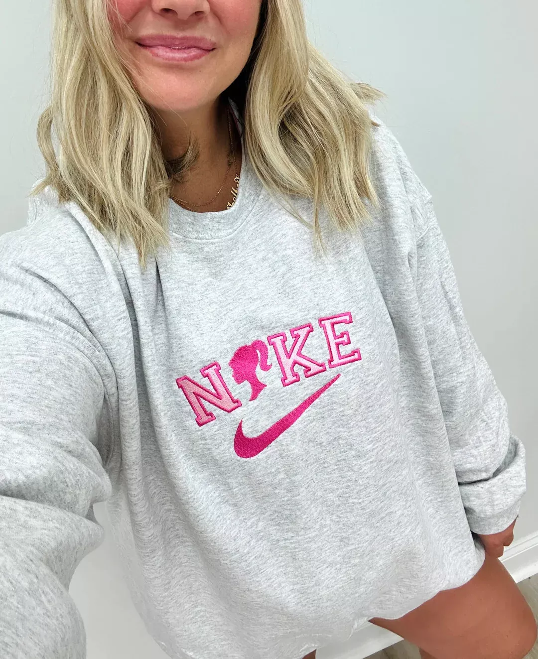 Product id: Pink nike best sale spell out sweatshirt