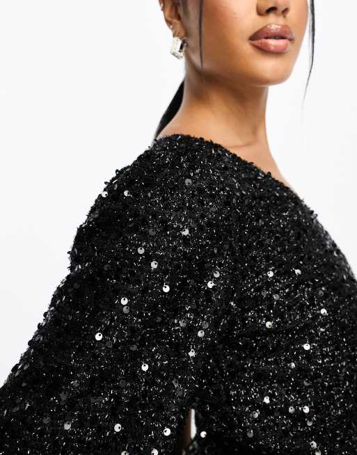 Product id: Black sequin best sale one shoulder top