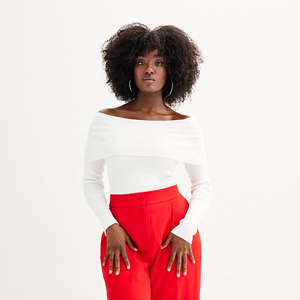- red off the shoulder top long sleeve