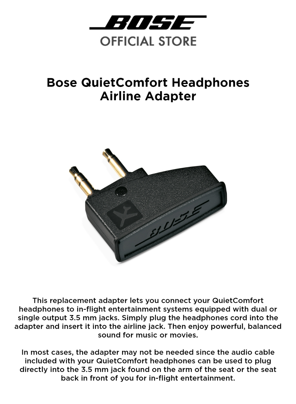 Product id: Bose quietcomfort airline best sale adapter