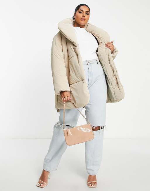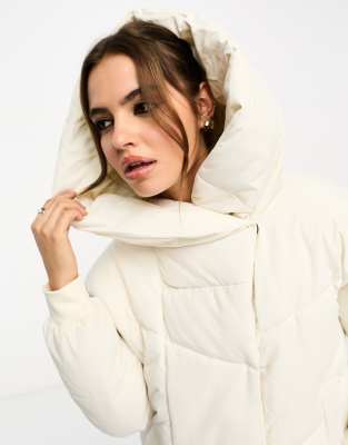 - asos design oversized jersey hooded puffer jacket in cream